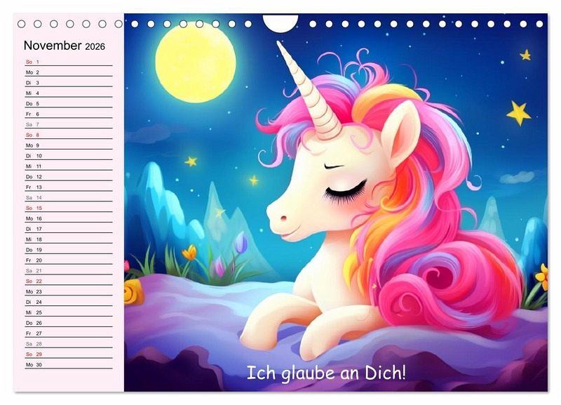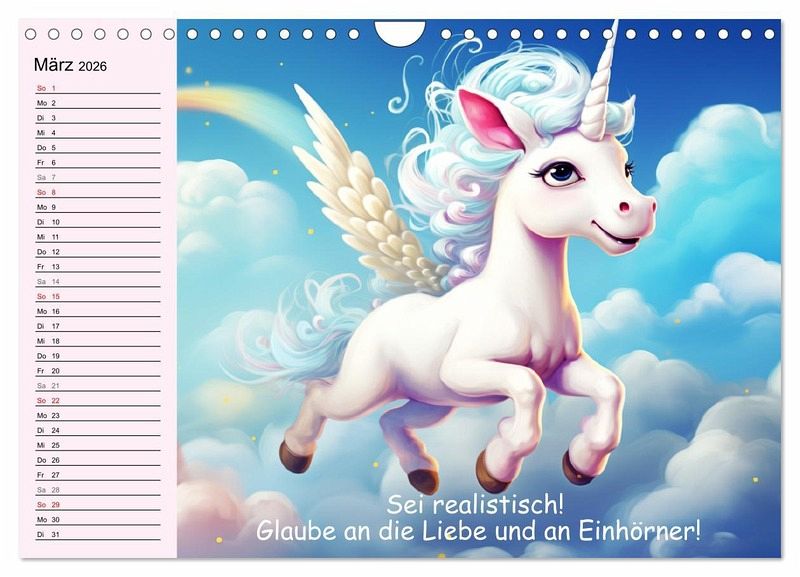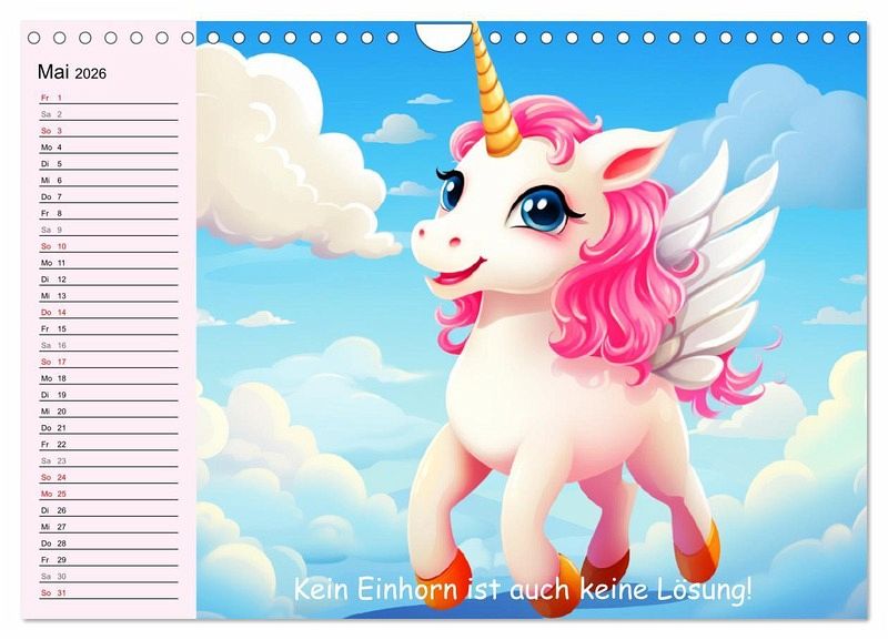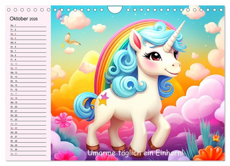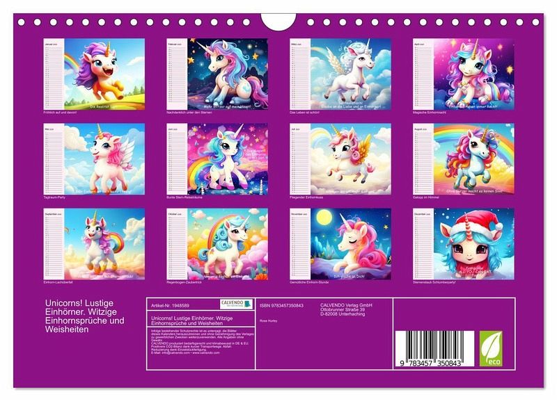 Erlebe magische Einhorn-Momente und tauche ein in eine Welt voller Lächeln und Liebe. Jeder Monat zeigt ein farbenfrohes, niedliches Einhorn und eine lustige Weisheit. Diese Illustrationen wurden mit Hilfe von KI erstellt und bringen Farbe und Freude in jedes Zuhause. Ein perfektes Geschenk für das ganze Jahr!