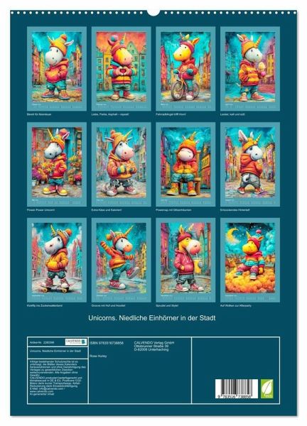 PREMIUM-LINIE - Brillanter Fotokalender mit 12 wunderschönen Motiven, Kunstdruck in Hochglanz in Museumsqualität.QUALITÄT - edle Materialien, stabile Rückwand mit 2 innovativen Einstecktaschen für eine optimale Präsentation an der Wand.NACHHALTIG - deutliche Abfallreduzierung durch bedarfsgerechte Einzelstückfertigung, umweltfreundliches FSC-zertifiziertes Papier, Produktion in Deutschland, klimabewussteLogistik.PERFEKTES GESCHENK - Kalender für Freunde und Familie, für Kinder und Erwachsene, jung und alt, zu Weihnachten, Geburtstag oder zwischendurch.Stylishe Einhörner die im Streetwear-Chic durch die Stadt ziehen - charmant, verspielt und einfach magisch! von Autor(in): Rose Hurley