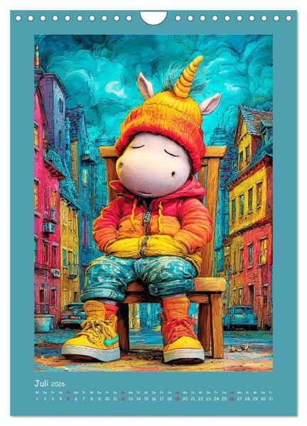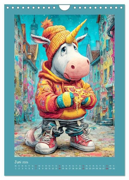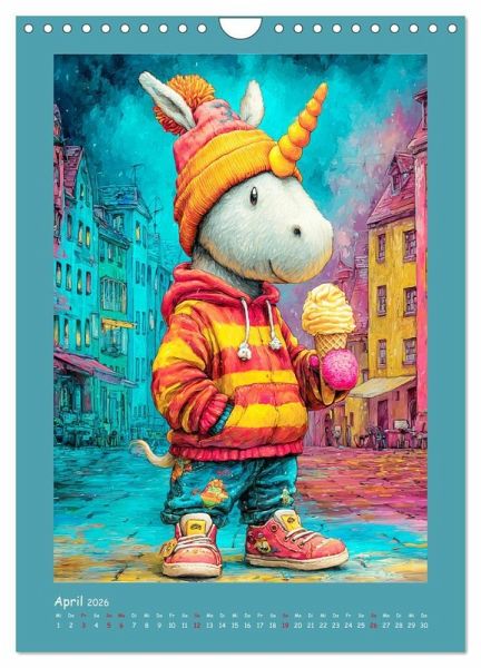 Das ist ein liebevoll gestalteter Cartoon-Kalender, der urbane Coolness mit märchenhafter Süße verbindet. Jedes Motiv zeigt ein einzigartiges Einhorn in trendiger Streetwear, das den Alltag mit Regenbogenflair und einer Prise Humor versüßt. Die mit der Hilfe von KI erschaffenen Szenen fangen das Leben in der Stadt ein - von Pizza bis Skateboard, immer mit einem Augenzwinkern. Niedliche Illustrationen für alle, die glauben, dass auch die Stadt ein bisschen Magie vertragen kann.