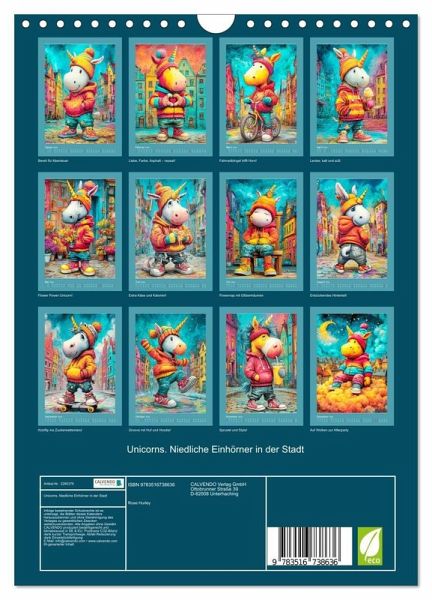 QUALITÄT - Hochwertiger Fotokalender mit 12 wunderschönen Motiven auf lichtbeständigem Bilderdruckpapier, robuste Spiralbindung mit Aufhängebügel.NACHHALTIG - deutliche Abfallreduzierung durch bedarfsgerechte Einzelstückfertigung, umweltfreundliches FSC-zertifiziertes Papier, Produktion in Deutschland, klimabewusste Logistik.PERFEKTES GESCHENK - Kalender für Freunde und Familie, für Kinder und Erwachsene, jung und alt, zu Weihnachten, Geburtstag oder zwischendurch.VIELFALT - Bildkalender in verschiedenen Formaten, z.B. DIN A5, DIN A4, DIN A3 sowie DIN A2. Ob Naturmotiv, Gemälde oder Fotos, ideal für ein persönliches Wohlfühlambiente.Stylishe Einhörner die im Streetwear-Chic durch die Stadt ziehen - charmant, verspielt und einfach magisch! von Autor(in): Rose Hurley