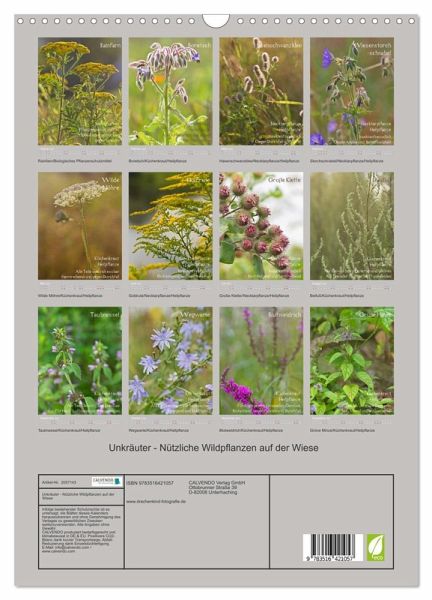 QUALITÄT - Hochwertiger Fotokalender mit 12 wunderschönen Motiven auf lichtbeständigem Bilderdruckpapier, robuste Spiralbindung mit Aufhängebügel.NACHHALTIG - deutliche Abfallreduzierung durch bedarfsgerechte Einzelstückfertigung, umweltfreundliches FSC-zertifiziertes Papier, Produktion in Deutschland, klimabewusste Logistik.PERFEKTES GESCHENK - Kalender für Freunde und Familie, für Kinder und Erwachsene, jung und alt, zu Weihnachten, Geburtstag oder zwischendurch.VIELFALT - Bildkalender in verschiedenen Formaten, z.B. DIN A5, DIN A4, DIN A3 sowie DIN A2. Ob Naturmotiv, Gemälde oder Fotos, ideal für ein persönliches Wohlfühlambiente.Nützliche Wildpflanzen auf der Wiese von Autor(in): drachenkind-fotografie