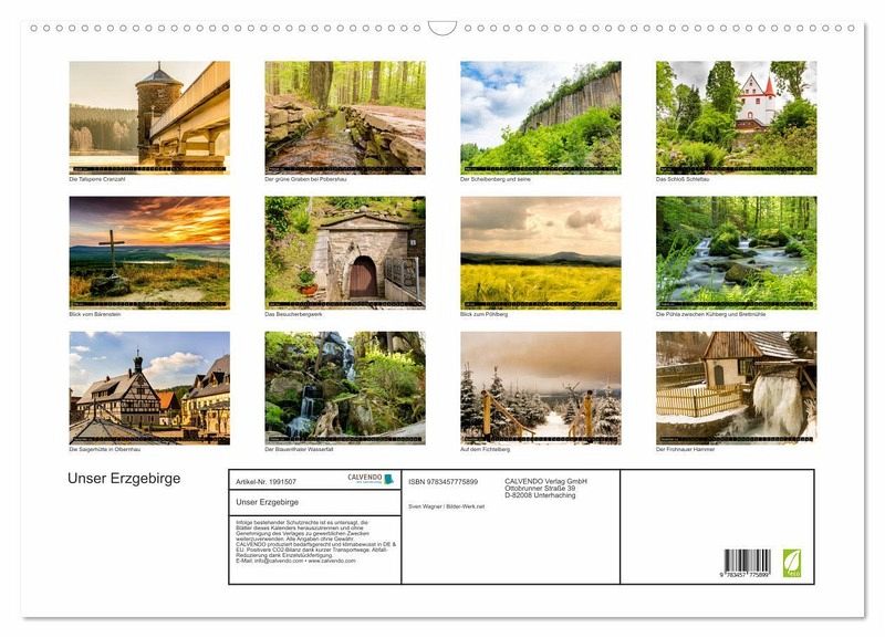 QUALITÄT - Hochwertiger Fotokalender mit 12 wunderschönen Motiven auf lichtbeständigem Bilderdruckpapier, robuste Spiralbindung mit Aufhängebügel.NACHHALTIG - deutliche Abfallreduzierung durch bedarfsgerechte Einzelstückfertigung, umweltfreundliches FSC-zertifiziertes Papier, Produktion in Deutschland, klimabewusste Logistik.PERFEKTES GESCHENK - Kalender für Freunde und Familie, für Kinder und Erwachsene, jung und alt, zu Weihnachten, Geburtstag oder zwischendurch.VIELFALT - Bildkalender in verschiedenen Formaten, z.B. DIN A5, DIN A4, DIN A3 sowie DIN A2. Ob Naturmotiv, Gemälde oder Fotos, ideal für ein persönliches Wohlfühlambiente.12 wunderschöne Bilder des Erzgebirges von Autor(in): Sven Wagner