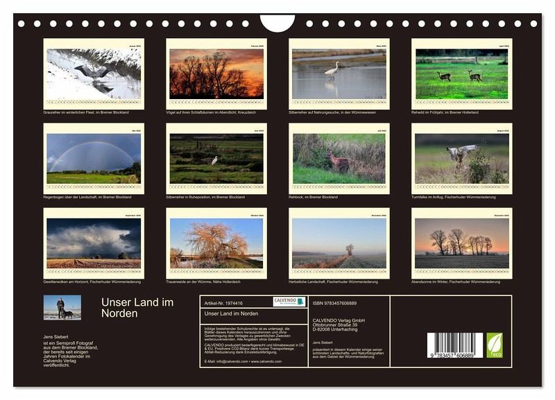 Jens Siebert präsentiert in diesem Kalender einige seiner schönsten Landschafts- und Naturfotografien aus dem Gebiet der Wümmeniederung.