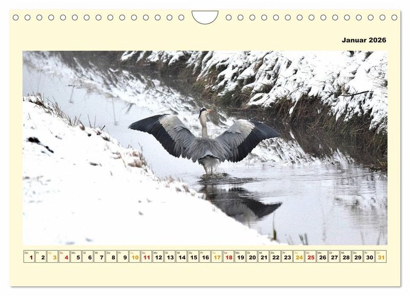 Januar: Graureiher im winterlichen Fleet, im Bremer Blockland