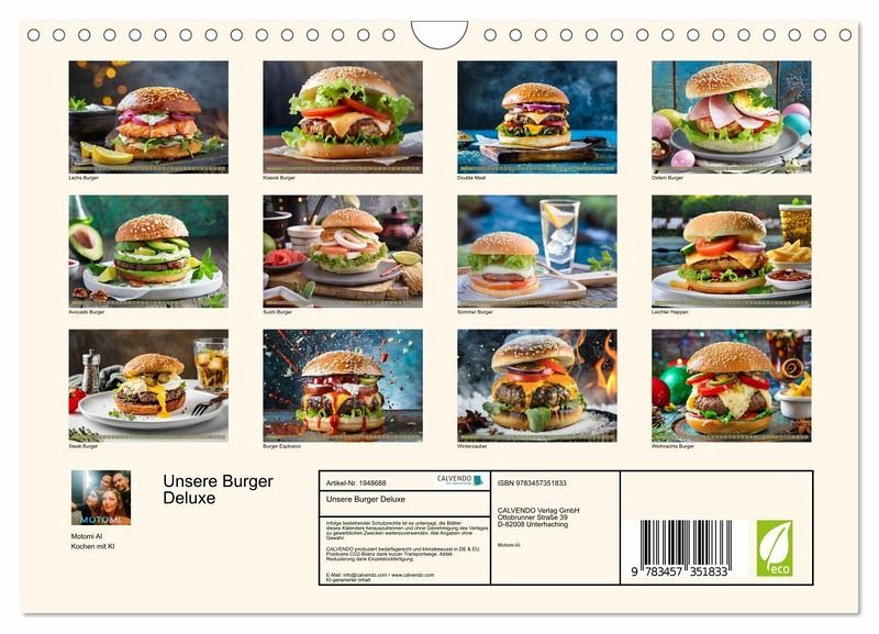 QUALITÄT - Hochwertiger Fotokalender mit 12 wunderschönen Motiven auf lichtbeständigem Bilderdruckpapier, robuste Spiralbindung mit Aufhängebügel.NACHHALTIG - deutliche Abfallreduzierung durch bedarfsgerechte Einzelstückfertigung, umweltfreundliches FSC-zertifiziertes Papier, Produktion in Deutschland, klimabewusste Logistik.PERFEKTES GESCHENK - Kalender für Freunde und Familie, für Kinder und Erwachsene, jung und alt, zu Weihnachten, Geburtstag oder zwischendurch.VIELFALT - Bildkalender in verschiedenen Formaten, z.B. DIN A5, DIN A4, DIN A3 sowie DIN A2. Ob Naturmotiv, Gemälde oder Fotos, ideal für ein persönliches Wohlfühlambiente.Mit unseren Burgern rund ums Jahr. von Autor(in): Motomi AI