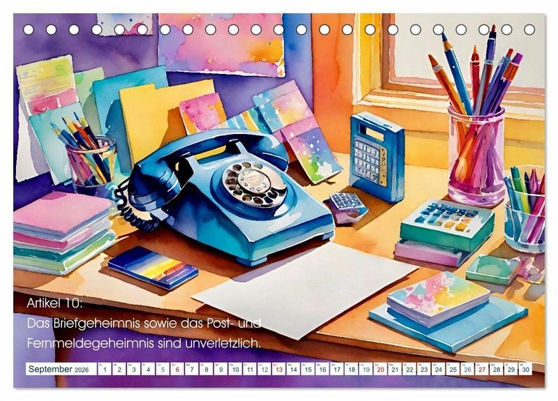 Bilder sagen mehr als Worte - warum also nicht das trockene Grundgesetz in farbenfrohe Bilder umsetzen, dachte sich Steffani Lehmann und editierte die Aquarellbilder mit Unterstützung einer KI. Ergebnis: Vermeintlich langweilige Politik kann richtig bunt sein!