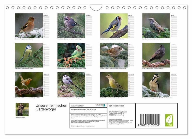 QUALITÄT - Hochwertiger Fotokalender mit 12 wunderschönen Motiven auf lichtbeständigem Bilderdruckpapier, robuste Spiralbindung mit Aufhängebügel.NACHHALTIG - deutliche Abfallreduzierung durch bedarfsgerechte Einzelstückfertigung, umweltfreundliches FSC-zertifiziertes Papier, Produktion in Deutschland, klimabewusste Logistik.PERFEKTES GESCHENK - Kalender für Freunde und Familie, für Kinder und Erwachsene, jung und alt, zu Weihnachten, Geburtstag oder zwischendurch.VIELFALT - Bildkalender in verschiedenen Formaten, z.B. DIN A5, DIN A4, DIN A3 sowie DIN A2. Ob Naturmotiv, Gemälde oder Fotos, ideal für ein persönliches Wohlfühlambiente.Wunderschöne Aufnahmen, die die Pracht, Vielfalt und Einzigartigkeit unserer "gefiederten Nachbarn" in unsere Wohnräume bringen - eine Freude für jeden Vogelliebhaber. von Autor(in): Dieter Wilczek