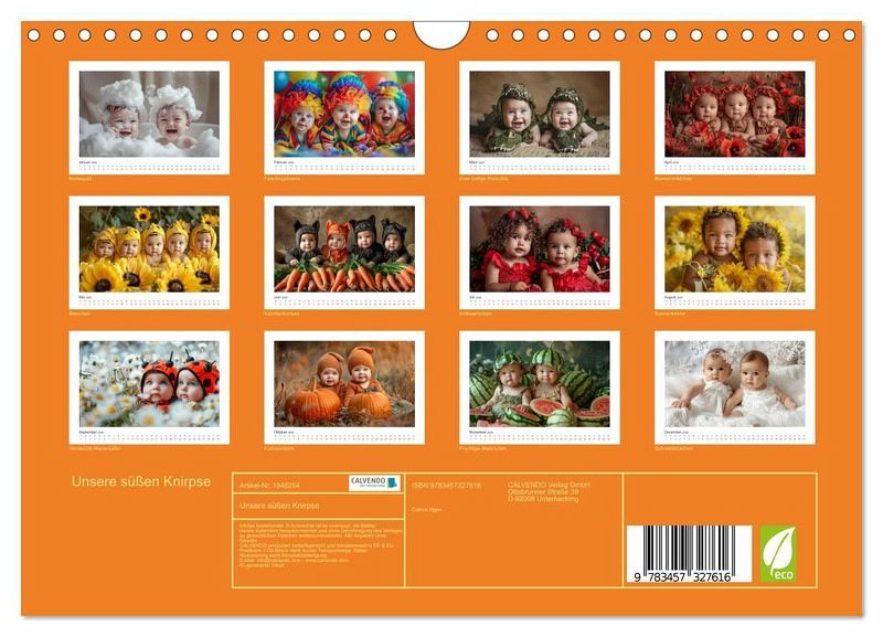 QUALITÄT - Hochwertiger Fotokalender mit 12 wunderschönen Motiven auf lichtbeständigem Bilderdruckpapier, robuste Spiralbindung mit Aufhängebügel.NACHHALTIG - deutliche Abfallreduzierung durch bedarfsgerechte Einzelstückfertigung, umweltfreundliches FSC-zertifiziertes Papier, Produktion in Deutschland, klimabewusste Logistik.PERFEKTES GESCHENK - Kalender für Freunde und Familie, für Kinder und Erwachsene, jung und alt, zu Weihnachten, Geburtstag oder zwischendurch.VIELFALT - Bildkalender in verschiedenen Formaten, z.B. DIN A5, DIN A4, DIN A3 sowie DIN A2. Ob Naturmotiv, Gemälde oder Fotos, ideal für ein persönliches Wohlfühlambiente.Lustige und anmutige Babyfotos - KI generiert von Autor(in): Catill