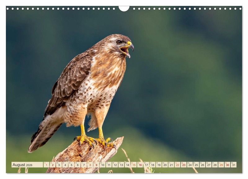 August: Mäusebussard (Buteo buteo) ruft laut.