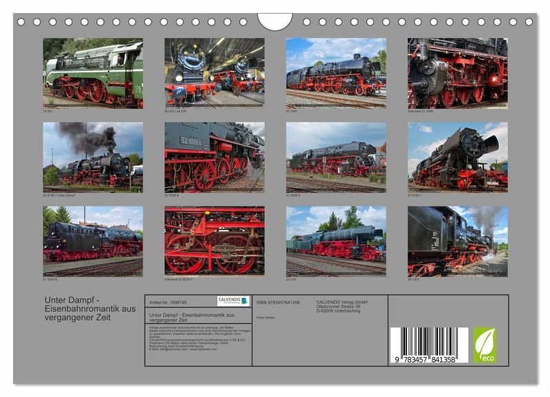 Noch bis in die 70er Jahre waren Eisenbahnwelten ohne Dampfloks mit all ihren Begleiterscheinungen wie Dampf-, Rauch- und Geräuschentwicklung undenkbar. Mit den Bildern betriebsfähiger Dampflokomotiven in Deutschland lässt dieser Kalender diese Ära wieder aufleben.