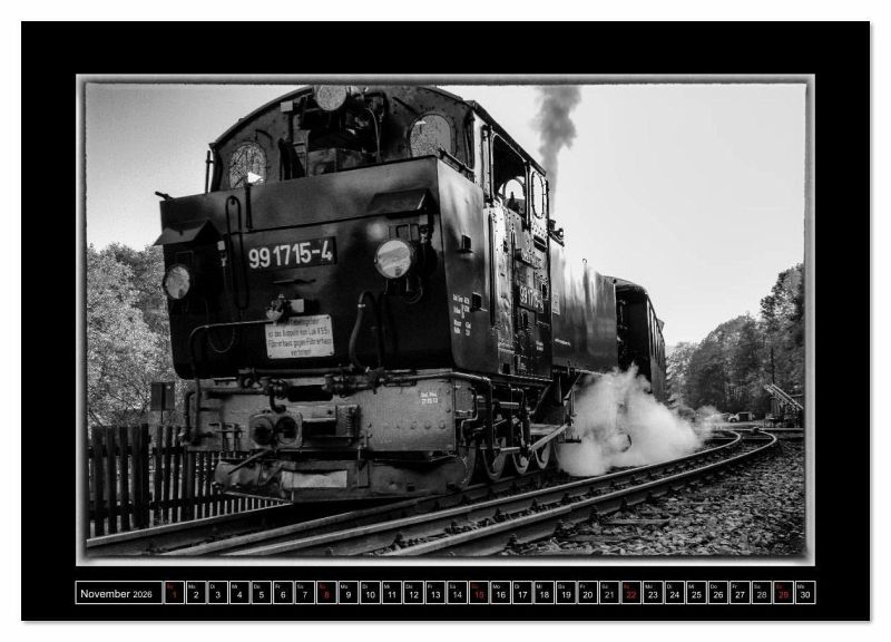 Dampferlebnis in Sachsen. Zwischen Steinbach und Jöhstadt rattern und schnaufen die historischen Dampflokomotiven durch das wild-romantische Erzgebirge. In edlen Schwarz-Weiß begleitet Sie dieser Kalender durchs Jahr. Ein ideales Geschenk für jeden Eisenbahnfreund.