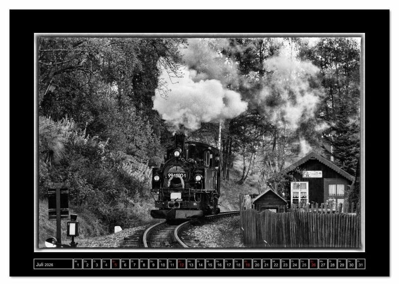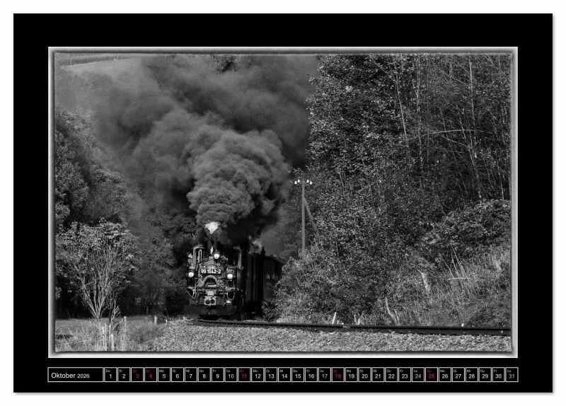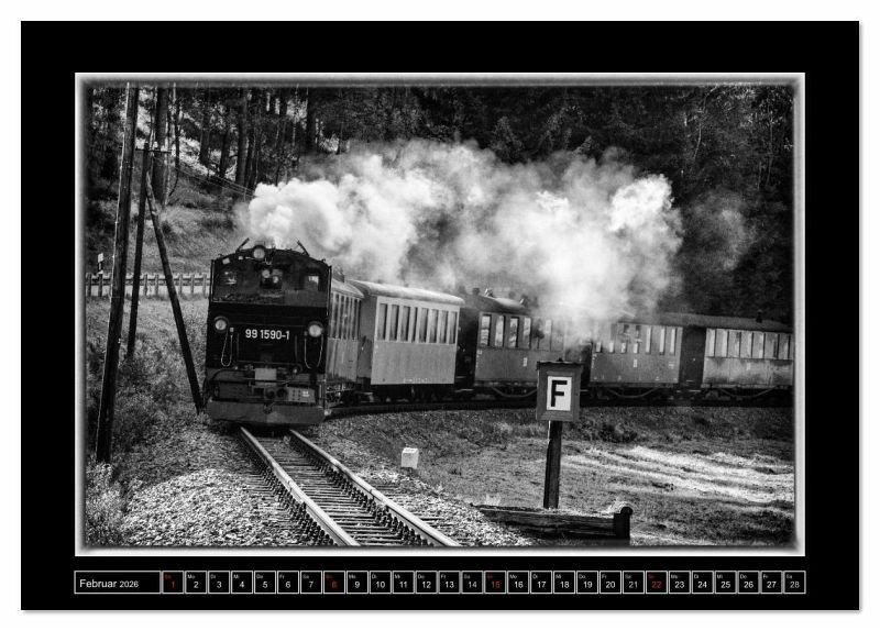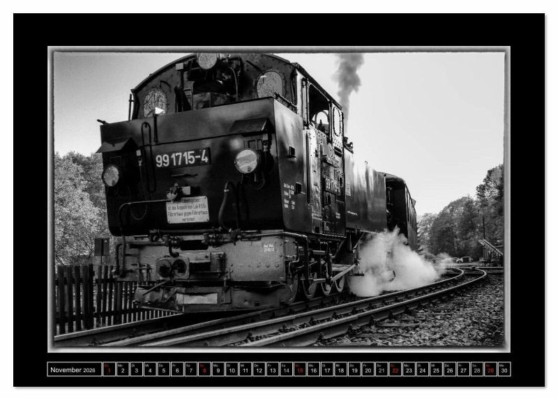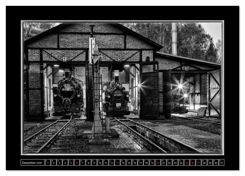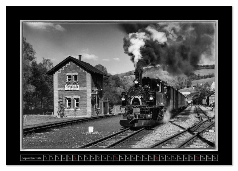 Dampferlebnis in Sachsen. Zwischen Steinbach und Jöhstadt rattern und schnaufen die historischen Dampflokomotiven durch das wild-romantische Erzgebirge. In edlen Schwarz-Weiß begleitet Sie dieser Kalender durchs Jahr. Ein ideales Geschenk für jeden Eisenbahnfreund.