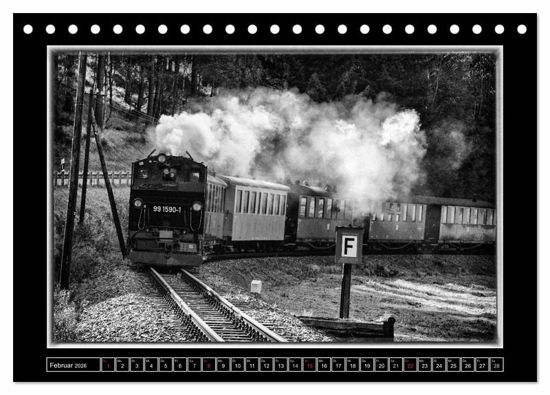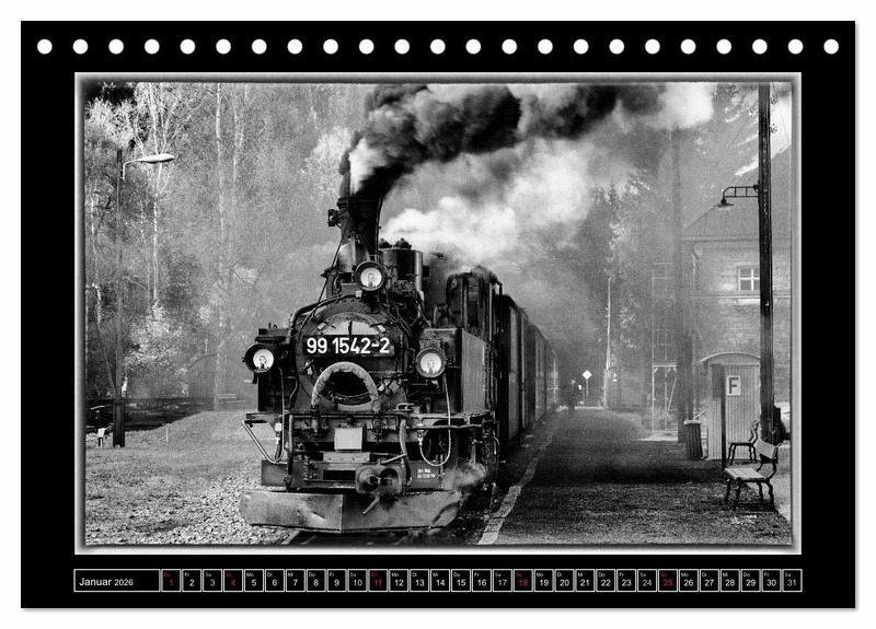 Dampferlebnis in Sachsen. Zwischen Steinbach und Jöhstadt rattern und schnaufen die historischen Dampflokomotiven durch das wild-romantische Erzgebirge. In edlen Schwarz-Weiß begleitet Sie dieser Kalender durchs Jahr. Ein ideales Geschenk für jeden Eisenbahnfreund.