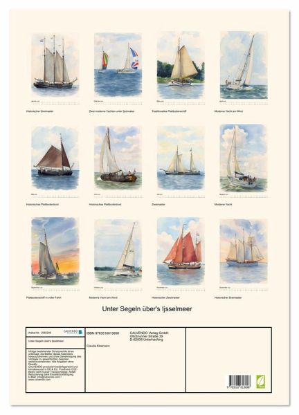 QUALITÄT - Hochwertiger Fotokalender mit 12 wunderschönen Motiven auf lichtbeständigem Bilderdruckpapier, robuste Spiralbindung mit Aufhängebügel.NACHHALTIG - deutliche Abfallreduzierung durch bedarfsgerechte Einzelstückfertigung, umweltfreundliches FSC-zertifiziertes Papier, Produktion in Deutschland, klimabewusste Logistik.PERFEKTES GESCHENK - Kalender für Freunde und Familie, für Kinder und Erwachsene, jung und alt, zu Weihnachten, Geburtstag oder zwischendurch.VIELFALT - Bildkalender in verschiedenen Formaten, z.B. DIN A5, DIN A4, DIN A3 sowie DIN A2. Ob Naturmotiv, Gemälde oder Fotos, ideal für ein persönliches Wohlfühlambiente.Aquarelle von Segelschiffen von Autor(in): Claudia Kleemann
