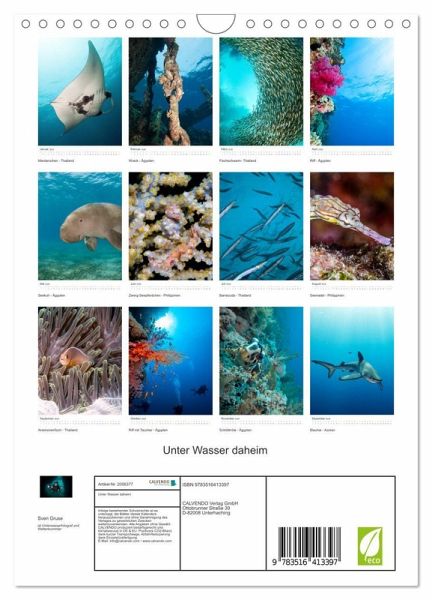 QUALITÄT - Hochwertiger Fotokalender mit 12 wunderschönen Motiven auf lichtbeständigem Bilderdruckpapier, robuste Spiralbindung mit Aufhängebügel.NACHHALTIG - deutliche Abfallreduzierung durch bedarfsgerechte Einzelstückfertigung, umweltfreundliches FSC-zertifiziertes Papier, Produktion in Deutschland, klimabewusste Logistik.PERFEKTES GESCHENK - Kalender für Freunde und Familie, für Kinder und Erwachsene, jung und alt, zu Weihnachten, Geburtstag oder zwischendurch.VIELFALT - Bildkalender in verschiedenen Formaten, z.B. DIN A5, DIN A4, DIN A3 sowie DIN A2. Ob Naturmotiv, Gemälde oder Fotos, ideal für ein persönliches Wohlfühlambiente.Der Unterwasserkalender nicht nur für Taucher von Autor(in): Sven Gruse