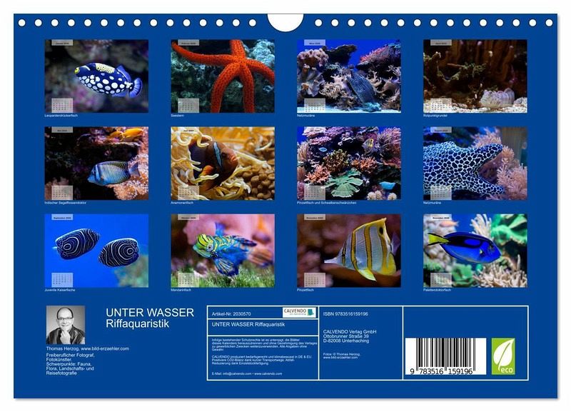 QUALITÄT - Hochwertiger Fotokalender mit 12 wunderschönen Motiven auf lichtbeständigem Bilderdruckpapier, robuste Spiralbindung mit Aufhängebügel.NACHHALTIG - deutliche Abfallreduzierung durch bedarfsgerechte Einzelstückfertigung, umweltfreundliches FSC-zertifiziertes Papier, Produktion in Deutschland, klimabewusste Logistik.PERFEKTES GESCHENK - Kalender für Freunde und Familie, für Kinder und Erwachsene, jung und alt, zu Weihnachten, Geburtstag oder zwischendurch.VIELFALT - Bildkalender in verschiedenen Formaten, z.B. DIN A5, DIN A4, DIN A3 sowie DIN A2. Ob Naturmotiv, Gemälde oder Fotos, ideal für ein persönliches Wohlfühlambiente.Faszinierende bunte Unterwasserwelt von Autor(in): bild-erzaehler