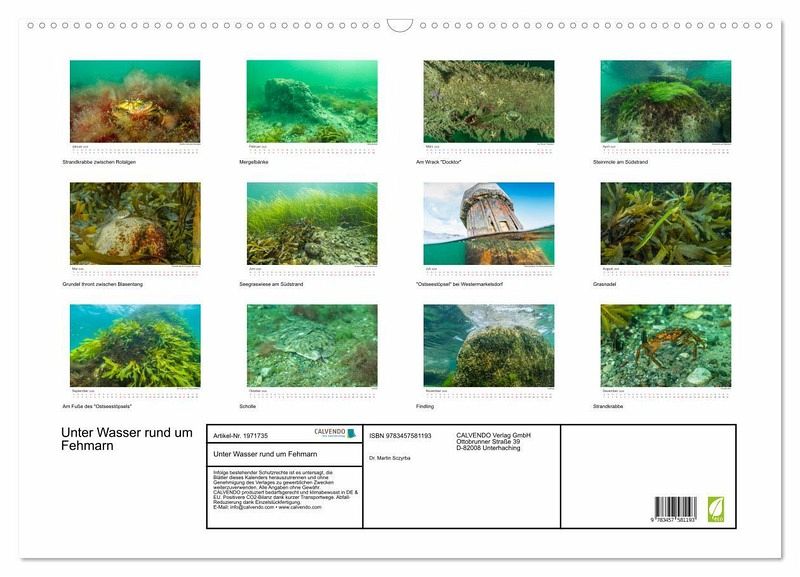 QUALITÄT - Hochwertiger Fotokalender mit 12 wunderschönen Motiven auf lichtbeständigem Bilderdruckpapier, robuste Spiralbindung mit Aufhängebügel.NACHHALTIG - deutliche Abfallreduzierung durch bedarfsgerechte Einzelstückfertigung, umweltfreundliches FSC-zertifiziertes Papier, Produktion in Deutschland, klimabewusste Logistik.PERFEKTES GESCHENK - Kalender für Freunde und Familie, für Kinder und Erwachsene, jung und alt, zu Weihnachten, Geburtstag oder zwischendurch.VIELFALT - Bildkalender in verschiedenen Formaten, z.B. DIN A5, DIN A4, DIN A3 sowie DIN A2. Ob Naturmotiv, Gemälde oder Fotos, ideal für ein persönliches Wohlfühlambiente.Kalender mit 13 Bilder der Unterwasserwelt in der Ostsee rund um Fehmarn. von Autor(in): Martin Sczyrba