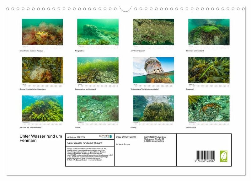QUALITÄT - Hochwertiger Fotokalender mit 12 wunderschönen Motiven auf lichtbeständigem Bilderdruckpapier, robuste Spiralbindung mit Aufhängebügel.NACHHALTIG - deutliche Abfallreduzierung durch bedarfsgerechte Einzelstückfertigung, umweltfreundliches FSC-zertifiziertes Papier, Produktion in Deutschland, klimabewusste Logistik.PERFEKTES GESCHENK - Kalender für Freunde und Familie, für Kinder und Erwachsene, jung und alt, zu Weihnachten, Geburtstag oder zwischendurch.VIELFALT - Bildkalender in verschiedenen Formaten, z.B. DIN A5, DIN A4, DIN A3 sowie DIN A2. Ob Naturmotiv, Gemälde oder Fotos, ideal für ein persönliches Wohlfühlambiente.Kalender mit 13 Bilder der Unterwasserwelt in der Ostsee rund um Fehmarn. von Autor(in): Martin Sczyrba
