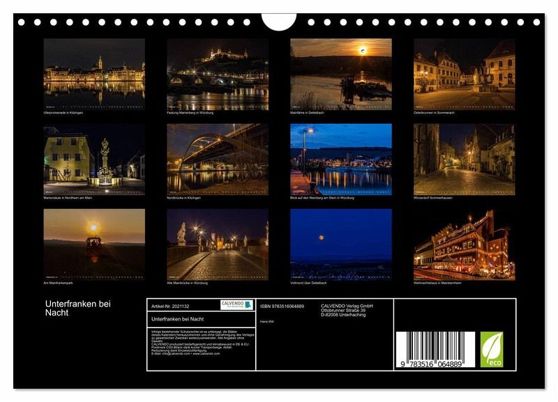 QUALITÄT - Hochwertiger Fotokalender mit 12 wunderschönen Motiven auf lichtbeständigem Bilderdruckpapier, robuste Spiralbindung mit Aufhängebügel.NACHHALTIG - deutliche Abfallreduzierung durch bedarfsgerechte Einzelstückfertigung, umweltfreundliches FSC-zertifiziertes Papier, Produktion in Deutschland, klimabewusste Logistik.PERFEKTES GESCHENK - Kalender für Freunde und Familie, für Kinder und Erwachsene, jung und alt, zu Weihnachten, Geburtstag oder zwischendurch.VIELFALT - Bildkalender in verschiedenen Formaten, z.B. DIN A5, DIN A4, DIN A3 sowie DIN A2. Ob Naturmotiv, Gemälde oder Fotos, ideal für ein persönliches Wohlfühlambiente.Unterfranken mit seinen Dörfern und Städten ist in der Nacht besonders schön. von Autor(in): Haenson