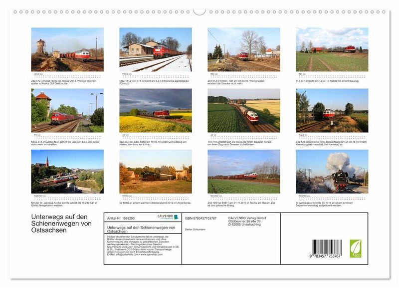 Einst hatte Ostsachsen eines der dichtesten Eisenbahnnetze in Europa, jedoch hat sich dieses Bild gewandelt. Güterzüge und Frachtaufkommen sind stark rückgängig geworden. Doch einige Leistungen verkehren noch auf den Strecken der Oberlausitz und Ostsachsen. Stefan Schumann hat einige dieser Züge im Bild festgehalten und zeigt seine Ergebnisse im aktuellen Kalender.