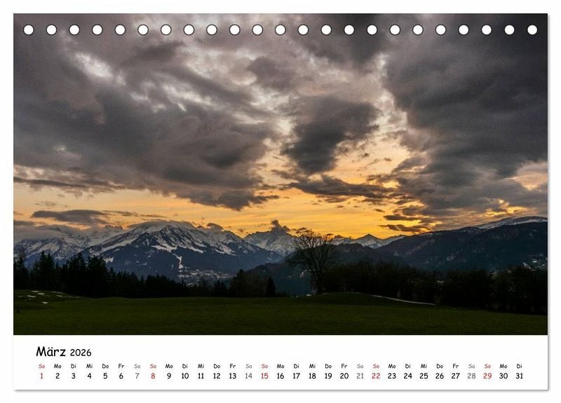 März: Dramatischer Sonnenuntergang in den Bergen bei Fischen