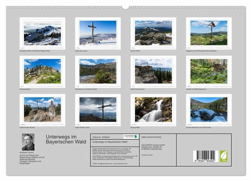 PREMIUM-LINIE - Brillanter Fotokalender mit 12 wunderschönen Motiven, Kunstdruck in Hochglanz in Museumsqualität.QUALITÄT - edle Materialien, stabile Rückwand mit 2 innovativen Einstecktaschen für eine optimale Präsentation an der Wand.NACHHALTIG - deutliche Abfallreduzierung durch bedarfsgerechte Einzelstückfertigung, umweltfreundliches FSC-zertifiziertes Papier, Produktion in Deutschland, klimabewusste Logistik.PERFEKTES GESCHENK - Kalender für Freunde und Familie, für Kinder und Erwachsene, jung und alt, zu Weihnachten, Geburtstag oder zwischendurch.Idyllische Landschaften im Bayerischen Wald festgehalten in malerischen Bildern. von Autor(in): Andreas Vonzin