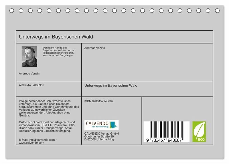 QUALITÄT - Hochwertiger Fotokalender mit 12 wunderschönen Motiven auf lichtbeständigem Bilderdruckpapier, robuste Spiralbindung.NACHHALTIG - deutliche Abfallreduzierung durch bedarfsgerechte Einzelstückfertigung, umweltfreundliches FSC-zertifiziertes Papier, Produktion in Deutschland, klimabewusste Logistik.PERFEKTES GESCHENK - Kalender für Freunde und Familie, für Kinder und Erwachsene, jung und alt, zu Weihnachten, Geburtstag oder zwischendurch.VIELFALT - Bildkalender in verschiedenen Formaten, z.B. DIN A5, DIN A4, DIN A3 sowie DIN A2. Ob Naturmotiv, Gemälde oder Fotos, ideal für ein persönliches Wohlfühlambiente.Idyllische Landschaften im Bayerischen Wald festgehalten in malerischen Bildern. von Autor(in): Andreas Vonzin