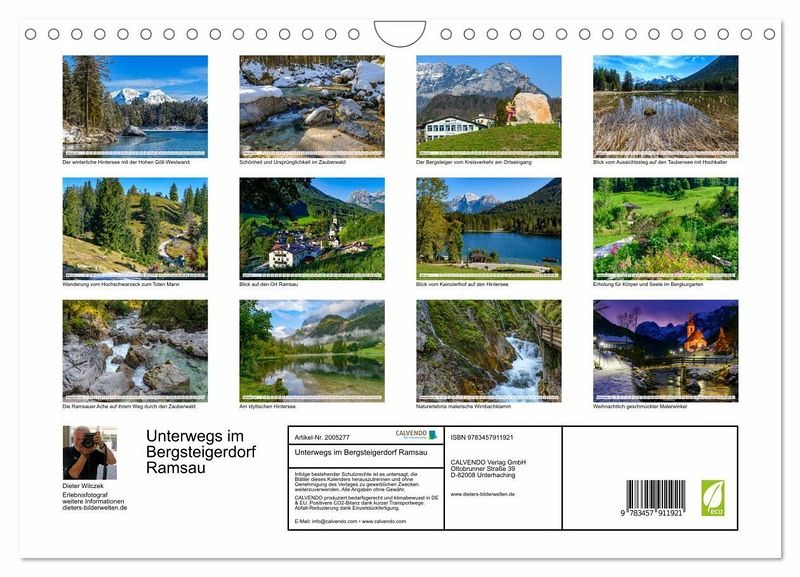 QUALITÄT - Hochwertiger Fotokalender mit 12 wunderschönen Motiven auf lichtbeständigem Bilderdruckpapier, robuste Spiralbindung mit Aufhängebügel.NACHHALTIG - deutliche Abfallreduzierung durch bedarfsgerechte Einzelstückfertigung, umweltfreundliches FSC-zertifiziertes Papier, Produktion in Deutschland, klimabewusste Logistik.PERFEKTES GESCHENK - Kalender für Freunde und Familie, für Kinder und Erwachsene, jung und alt, zu Weihnachten, Geburtstag oder zwischendurch.VIELFALT - Bildkalender in verschiedenen Formaten, z.B. DIN A5, DIN A4, DIN A3 sowie DIN A2. Ob Naturmotiv, Gemälde oder Fotos, ideal für ein persönliches Wohlfühlambiente.Ramsau empfängt seine Naturliebhaber, Wanderer und Sonnenanbeter mit einer attraktiven Mischung aus herzlicher Gastfreundschaft, imposanten Bergen, funkelnden Seen und bodenständigem Brauchtum. von Autor(in): Dieter Wilczek