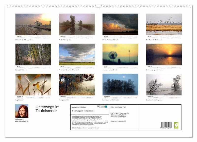 QUALITÄT - Hochwertiger Fotokalender mit 12 wunderschönen Motiven auf lichtbeständigem Bilderdruckpapier, robuste Spiralbindung mit Aufhängebügel.NACHHALTIG - deutliche Abfallreduzierung durch bedarfsgerechte Einzelstückfertigung, umweltfreundliches FSC-zertifiziertes Papier, Produktion in Deutschland, klimabewusste Logistik.PERFEKTES GESCHENK - Kalender für Freunde und Familie, für Kinder und Erwachsene, jung und alt, zu Weihnachten, Geburtstag oder zwischendurch.VIELFALT - Bildkalender in verschiedenen Formaten, z.B. DIN A5, DIN A4, DIN A3 sowie DIN A2. Ob Naturmotiv, Gemälde oder Fotos, ideal für ein persönliches Wohlfühlambiente.Atemberaubender Kalender mit faszinierenden Fotos des Teufelsmoores bei Bremen von Autor(in): Fotokunst Ulrike Adam