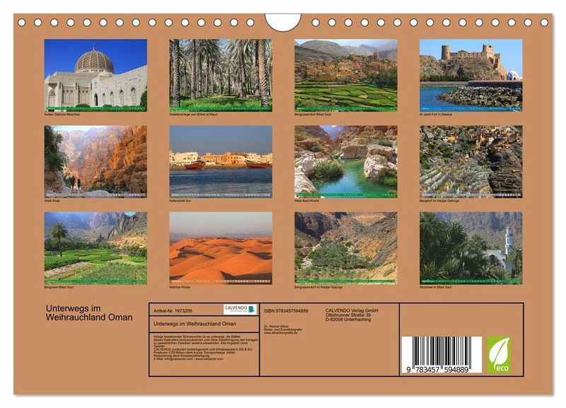 QUALITÄT - Hochwertiger Fotokalender mit 12 wunderschönen Motiven auf lichtbeständigem Bilderdruckpapier, robuste Spiralbindung mit Aufhängebügel.NACHHALTIG - deutliche Abfallreduzierung durch bedarfsgerechte Einzelstückfertigung, umweltfreundliches FSC-zertifiziertes Papier, Produktion in Deutschland, klimabewusste Logistik.PERFEKTES GESCHENK - Kalender für Freunde und Familie, für Kinder und Erwachsene, jung und alt, zu Weihnachten, Geburtstag oder zwischendurch.VIELFALT - Bildkalender in verschiedenen Formaten, z.B. DIN A5, DIN A4, DIN A3 sowie DIN A2. Ob Naturmotiv, Gemälde oder Fotos, ideal für ein persönliches Wohlfühlambiente.Schönheit und faszinierende landschaftliche Vielfalt des Sultanats Oman von Autor(in): Dr. Werner Altner