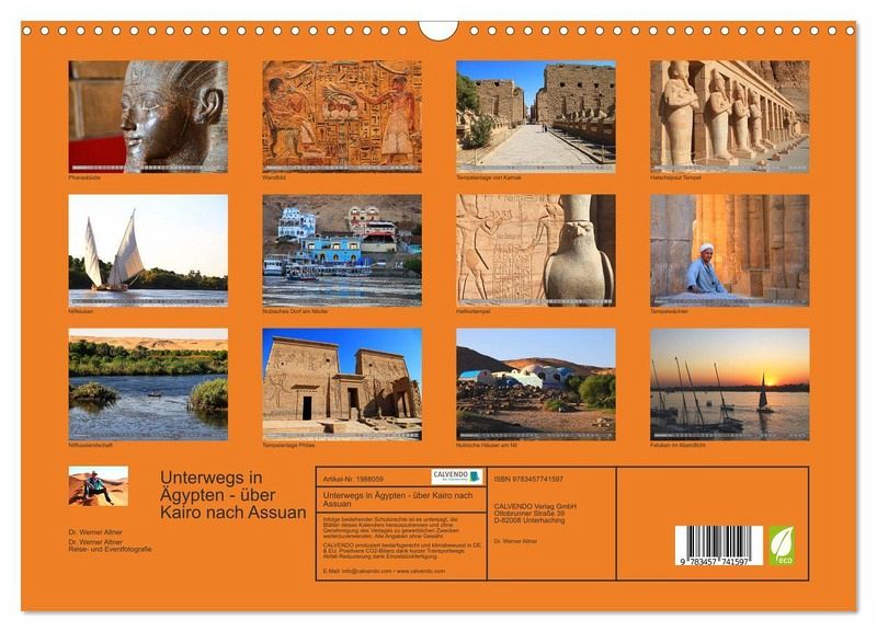 QUALITÄT - Hochwertiger Fotokalender mit 12 wunderschönen Motiven auf lichtbeständigem Bilderdruckpapier, robuste Spiralbindung mit Aufhängebügel.NACHHALTIG - deutliche Abfallreduzierung durch bedarfsgerechte Einzelstückfertigung, umweltfreundliches FSC-zertifiziertes Papier, Produktion in Deutschland, klimabewusste Logistik.PERFEKTES GESCHENK - Kalender für Freunde und Familie, für Kinder und Erwachsene, jung und alt, zu Weihnachten, Geburtstag oder zwischendurch.VIELFALT - Bildkalender in verschiedenen Formaten,z.B. DIN A5, DIN A4, DIN A3 sowie DIN A2. Ob Naturmotiv, Gemälde oder Fotos, ideal für ein persönliches Wohlfühlambiente.Faszinierende Kultur- und Landschaftsmotive zwischen Kairo und Assuan von Autor(in): Dr. Werner Altner