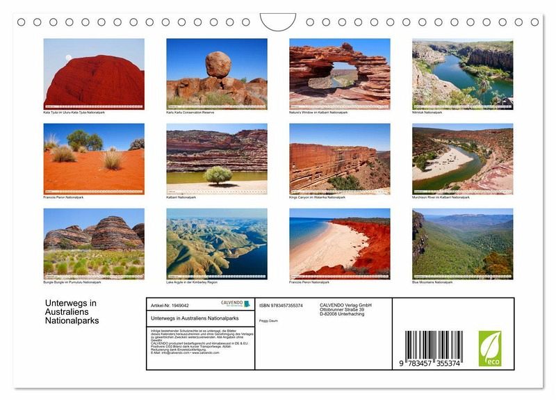 QUALITÄT - Hochwertiger Fotokalender mit 12 wunderschönen Motiven auf lichtbeständigem Bilderdruckpapier, robuste Spiralbindung mit Aufhängebügel.NACHHALTIG - deutliche Abfallreduzierung durch bedarfsgerechte Einzelstückfertigung, umweltfreundliches FSC-zertifiziertes Papier, Produktion in Deutschland, klimabewusste Logistik.PERFEKTES GESCHENK - Kalender für Freunde und Familie, für Kinder und Erwachsene, jung und alt, zu Weihnachten, Geburtstag oder zwischendurch.VIELFALT - Bildkalender in verschiedenen Formaten, z.B. DIN A5, DIN A4, DIN A3 sowie DIN A2. Ob Naturmotiv, Gemälde oder Fotos, ideal für ein persönliches Wohlfühlambiente.Außergewöhnliche Nationalparks in Northern Territory und Westaustralien von Autor(in): Peggy Daum