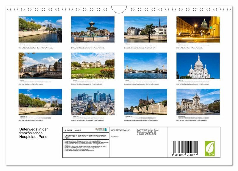 QUALITÄT - Hochwertiger Fotokalender mit 12 wunderschönen Motiven auf lichtbeständigem Bilderdruckpapier, robuste Spiralbindung mit Aufhängebügel.NACHHALTIG - deutliche Abfallreduzierung durch bedarfsgerechte Einzelstückfertigung, umweltfreundliches FSC-zertifiziertes Papier, Produktion in Deutschland, klimabewusste Logistik.PERFEKTES GESCHENK - Kalender für Freunde und Familie, für Kinder und Erwachsene, jung und alt, zu Weihnachten, Geburtstag oder zwischendurch.VIELFALT - Bildkalender in verschiedenen Formaten, z.B. DIN A5, DIN A4, DIN A3 sowie DIN A2. Ob Naturmotiv, Gemälde oder Fotos, ideal für ein persönliches Wohlfühlambiente.Fotografien aus der französischen Hauptstadt Paris von Autor(in): Rico Ködder
