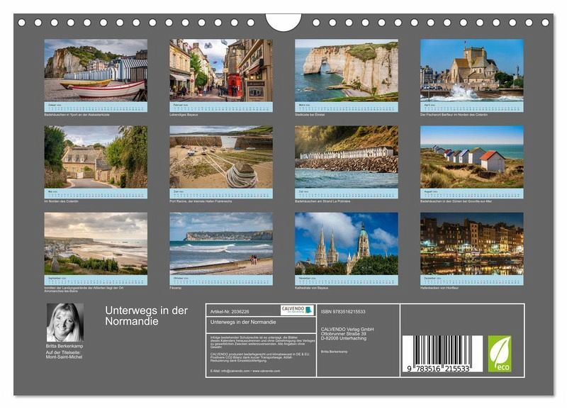 QUALITÄT - Hochwertiger Fotokalender mit 12 wunderschönen Motiven auf lichtbeständigem Bilderdruckpapier, robuste Spiralbindung mit Aufhängebügel.NACHHALTIG - deutliche Abfallreduzierung durch bedarfsgerechte Einzelstückfertigung, umweltfreundliches FSC-zertifiziertes Papier, Produktion in Deutschland, klimabewusste Logistik.PERFEKTES GESCHENK - Kalender für Freunde und Familie, für Kinder und Erwachsene, jung und alt, zu Weihnachten, Geburtstag oder zwischendurch.VIELFALT - Bildkalender in verschiedenen Formaten, z.B. DIN A5, DIN A4, DIN A3 sowie DIN A2. Ob Naturmotiv, Gemälde oder Fotos, ideal für ein persönliches Wohlfühlambiente.Entdecken Sie die Highlights der Normandie von Autor(in): Britta Berkenkamp