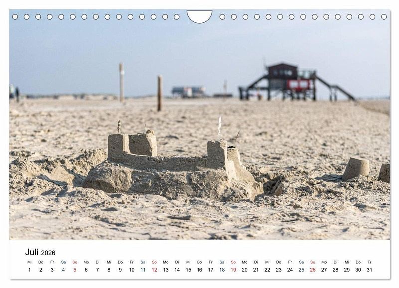 Juli: Sandburg am Strand von Sankt Peter-Ording