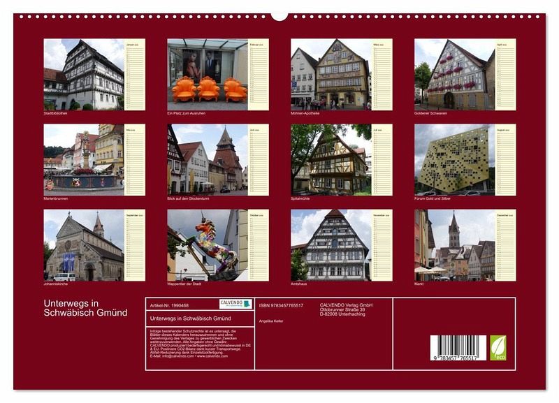 PREMIUM-LINIE - Brillanter Fotokalender mit 12 wunderschönen Motiven, Kunstdruck in Hochglanz in Museumsqualität.QUALITÄT - edle Materialien, stabile Rückwand mit 2 innovativen Einstecktaschen für eine optimale Präsentation an der Wand.NACHHALTIG - deutliche Abfallreduzierung durch bedarfsgerechte Einzelstückfertigung, umweltfreundliches FSC-zertifiziertes Papier, Produktion in Deutschland, klimabewusste Logistik.PERFEKTES GESCHENK - Kalender für Freunde und Familie, für Kinder und Erwachsene, jung und alt, zu Weihnachten, Geburtstag oder zwischendurch.Ein Bummeldurch die älteste Stauferstadt mit PLANER-Funktion von Autor(in): Angelika Keller