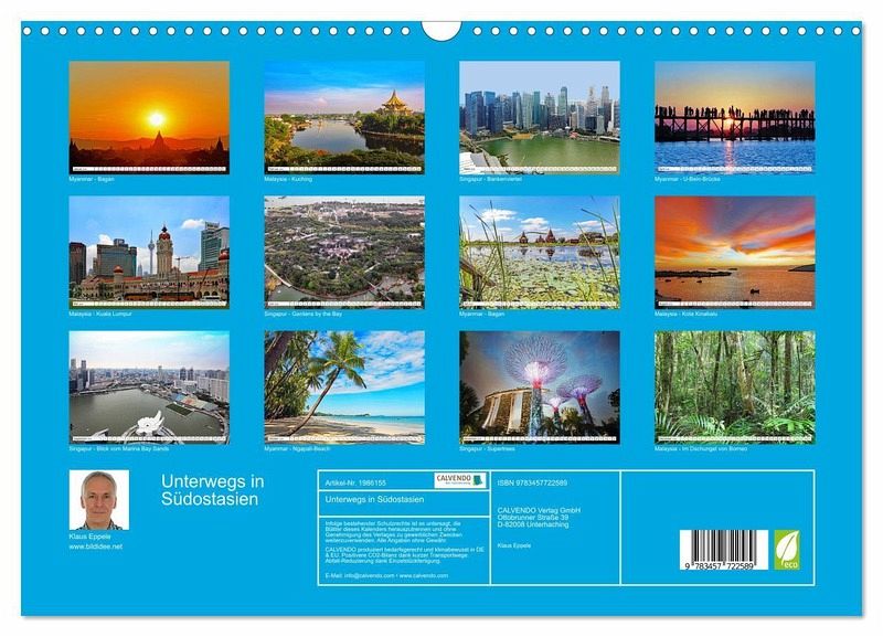 QUALITÄT - Hochwertiger Fotokalender mit 12 wunderschönen Motiven auf lichtbeständigem Bilderdruckpapier, robuste Spiralbindung mit Aufhängebügel.NACHHALTIG - deutliche Abfallreduzierung durch bedarfsgerechte Einzelstückfertigung, umweltfreundliches FSC-zertifiziertes Papier, Produktion in Deutschland, klimabewusste Logistik.PERFEKTES GESCHENK - Kalender für Freunde und Familie, für Kinder und Erwachsene, jung und alt, zu Weihnachten, Geburtstag oder zwischendurch.VIELFALT - Bildkalender in verschiedenen Formaten, z.B. DIN A5, DIN A4, DIN A3 sowie DIN A2. Ob Naturmotiv, Gemälde oder Fotos, ideal für ein persönliches Wohlfühlambiente.Eine Reise durch Myanmar, Malaysia und Singapur von Autor(in): Klaus Eppele