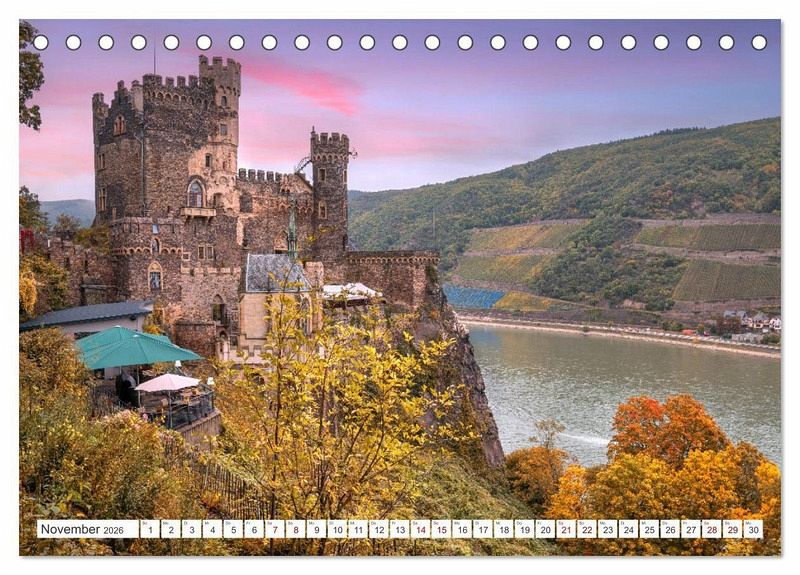 Vorbei an mittelalterlichen Burgen und entlang der Flüsse Rhein und Mosel durchläuft man auf dem Weg vom Rolandsbogen bei Remagen zum Mäuseturm bei Bingen eine der schönsten und malerischsten Naturlandschaften Deutschlands. Der Kalender weckt Vorfreude und hält zugleich die Erinnerung an einen noch weitgehend unentdeckten Premiumwanderweg aufrecht.