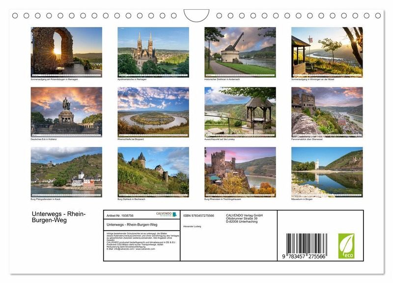 QUALITÄT - Hochwertiger Fotokalender mit 12 wunderschönen Motiven auf lichtbeständigem Bilderdruckpapier, robuste Spiralbindung mit Aufhängebügel.NACHHALTIG - deutliche Abfallreduzierung durch bedarfsgerechte Einzelstückfertigung, umweltfreundliches FSC-zertifiziertes Papier, Produktion in Deutschland, klimabewusste Logistik.PERFEKTES GESCHENK - Kalender für Freunde und Familie, für Kinder und Erwachsene, jung und alt, zu Weihnachten, Geburtstag oder zwischendurch.VIELFALT - Bildkalender in verschiedenen Formaten, z.B. DIN A5, DIN A4, DIN A3 sowie DIN A2. Ob Naturmotiv, Gemälde oder Fotos, ideal für ein persönliches Wohlfühlambiente.Den Rhein entlang durch das Weltkulturerbe Mittelrheintal. von Autor(in): alfotokunst