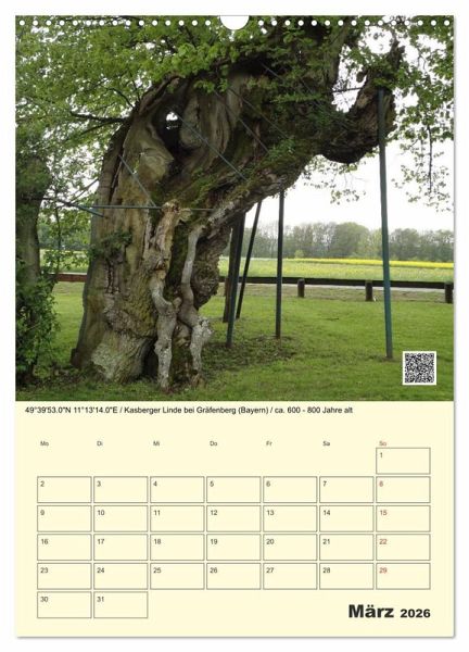ALTE BÄUME - knorrig, verwittert, mystisch und schön - das ist Ihr DING? Dann besuchen Sie die im Volksmund auch 1.000-jährige LINDEN, EICHEN und Co. genannten Bäume doch selbst. Der QR-CODE und die GPS-DATEN im PLANER machen es möglich. Den Code mit dem Handy oder Tablet einscannen - und los geht's !