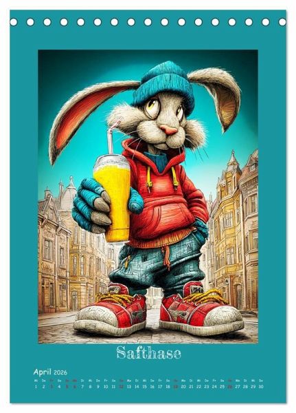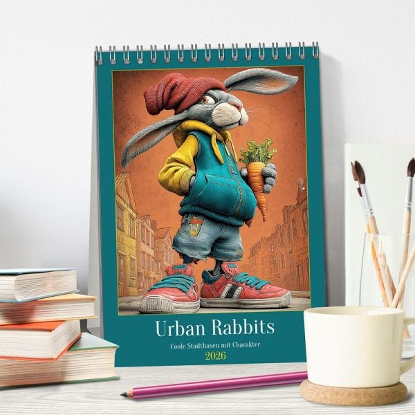 Dieser Kalender zeigt, wie vielseitig und charmant Cartoons sein können - in Form von stylischen Stadthasen, die mitten im urbanen Leben angekommen sind. Jeder Hase wurde mit der Hilfe von KI erstellt und hat eine eigene Geschichte. Von chillig bis chaotisch, von spirituell bis rebellisch. Mit einem Augenzwinkern verbinden die Illustrationen Streetstyle, Humor und Hasencharme auf künstlerische Weise. So wird jeder Monat zu einem Hoppel-Spaß.