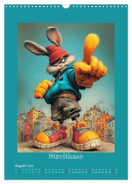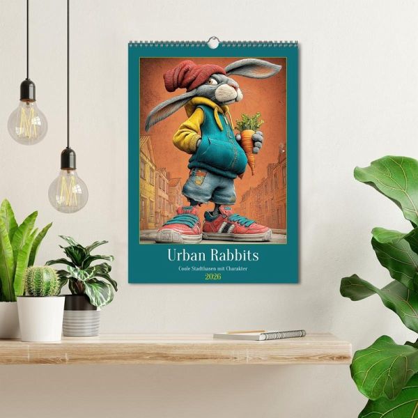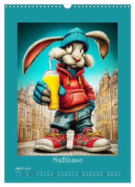 Dieser Kalender zeigt, wie vielseitig und charmant Cartoons sein können - in Form von stylischen Stadthasen, die mitten im urbanen Leben angekommen sind. Jeder Hase wurde mit der Hilfe von KI erstellt und hat eine eigene Geschichte. Von chillig bis chaotisch, von spirituell bis rebellisch. Mit einem Augenzwinkern verbinden die Illustrationen Streetstyle, Humor und Hasencharme auf künstlerische Weise. So wird jeder Monat zu einem Hoppel-Spaß.