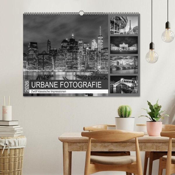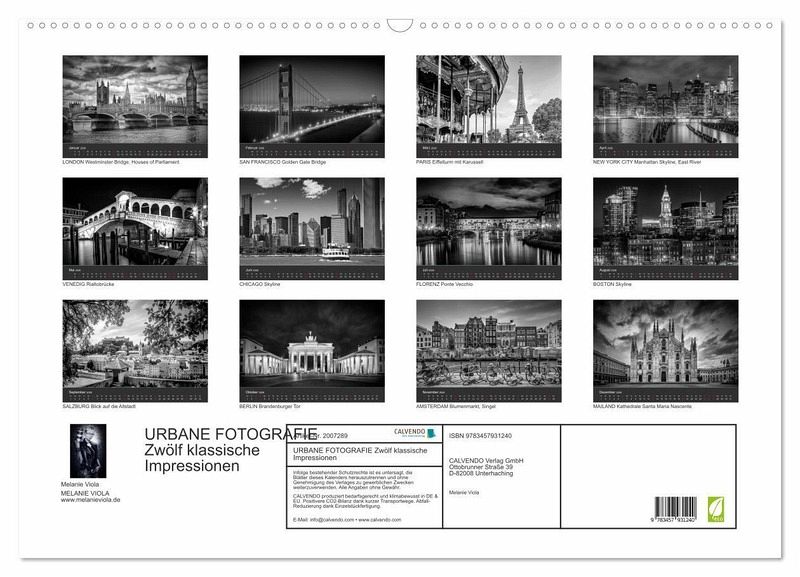 Erleben Sie den Charme weltbekannter Städte bei Tag oder Nacht. Typische Szenen, eindrucksvolle Skylines und Sehenswürdigkeiten aus Europa und den Vereinigten Staaten vereinen sich in diesem Kalender. Zwölf harmonische Schwarz-Weiß-Fotografien führen durch reizvolle Metropolen.