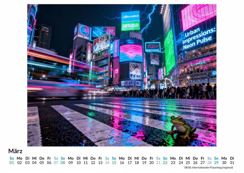 Der Puls der Großstadt, eingefangen in zwölf einzigartigen Momentaufnahmen. Der Kalender "Urbane Metropolen-Impressionen" präsentiert bekannte Skylines und verborgene Winkel in einem völlig neuen Licht. Er zelebriert die Energie, die Architektur und den unverwechselbaren Charakter weltberühmter Städte durch eine besondere visuelle Sprache. Dieser Kalender ist eine ideale Wahl für: * Liebhaber von Städtereisen und urbaner Ästhetik. * Freunde von modernem Design und grafischer Gestaltung. * Alle, die eine besondere Wanddekoration suchen, die zum Träumen von der Ferne anregt. Jedes Monatsblatt zeigt eine stilisierte Interpretation einer Metropole. Die Bilder sind keine Fotografien und auch keine klassischen Malereien. Stattdessen wurden die charakteristischen Merkmale jeder Stadt durch die Interpretation von unzähligen visuellen Datenpunkten zu einer neuen, eigenständigen Komposition geformt. Das Ergebnis sind Ansichten, die vertraut wirken und doch eine faszinierende, surreale Note besitzen. Klare Linien, durchdachte Farbpaletten und ein Fokus auf architektonische Formen prägen den Stil. Mit dem Kauf dieses Kalenders kann man Folgendes erwarten: * Zwölf stilisierte Stadtansichten für jeden Monat des Jahres. * Ein praktisches Kalendarium, das sich dezent in das Design einfügt. * Ein moderner Wandschmuck, der das ganze Jahr über inspiriert. Dieser Kalender ist eine visuelle Reise durch die Zentren der Welt, gesehen durch eine Linse, die das Bekannte neu erfindet. Er begleitet durch das Jahr und bringt den Geist der Metropolen an jede Wand. Es lohnt sich, die Monatsansichten zu entdecken und die eigene Lieblingsperspektive zu finden.