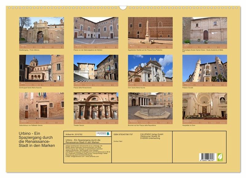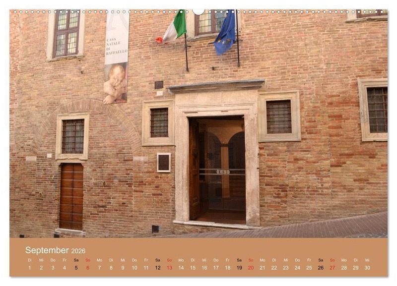 Ein kalendarischer Spaziergang durch Urbino einer Stadt in den Marken (Mittelitalien). Dank ihrer wunderbaren Kunst ist sie heute Teil des UNESCO-Weltkulturerbes. Im Palazzo Ducale befindet sich die Nationalgalerie der Marken in der Werke u. a. von Raffaello Sanzio, Piero della Francesa und Tiziano zu bewundern sind.