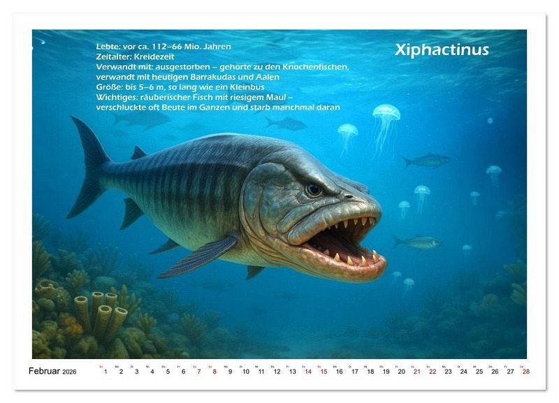 Die Zeit der merkwürdigen Unterwasser-Kreaturen ist lange vorbei. Über das wahre Aussehen dieser Tiere ist man sich nicht immer einig. Daher sind die Bilder, die man findet, auch sehr unterschiedlich. Ich habe versucht, die wichtigsten Merkmale eines jeden Tieres durch künstliche Intelligenz zum Vorschein zu bringen. Möge mein Kalender einladen, ein wenig selbst über diese Tiere zu forschen und vielleicht mehr über Paläontologie wissen zu wollen.