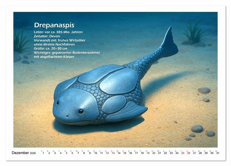 Die Zeit der merkwürdigen Unterwasser-Kreaturen ist lange vorbei. Über das wahre Aussehen dieser Tiere ist man sich nicht immer einig. Daher sind die Bilder, die man findet, auch sehr unterschiedlich. Ich habe versucht, die wichtigsten Merkmale eines jeden Tieres durch künstliche Intelligenz zum Vorschein zu bringen. Möge mein Kalender einladen, ein wenig selbst über diese Tiere zu forschen und vielleicht mehr über Paläontologie wissen zu wollen.