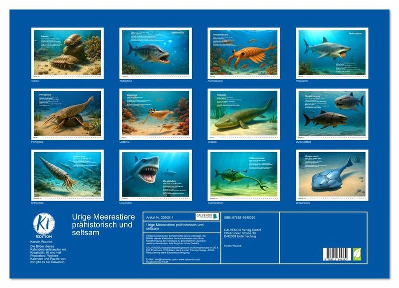 Die Zeit der merkwürdigen Unterwasser-Kreaturen ist lange vorbei. Über das wahre Aussehen dieser Tiere ist man sich nicht immer einig. Daher sind die Bilder, die man findet, auch sehr unterschiedlich. Ich habe versucht, die wichtigsten Merkmale eines jeden Tieres durch künstliche Intelligenz zum Vorschein zu bringen. Möge mein Kalender einladen, ein wenig selbst über diese Tiere zu forschen und vielleicht mehr über Paläontologie wissen zu wollen.