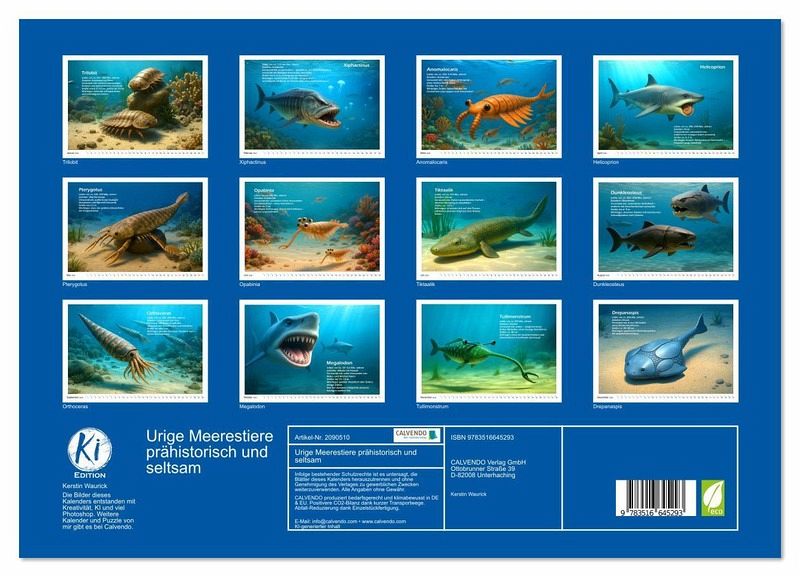 Die Zeit der merkwürdigen Unterwasser-Kreaturen ist lange vorbei. Über das wahre Aussehen dieser Tiere ist man sich nicht immer einig. Daher sind die Bilder, die man findet, auch sehr unterschiedlich. Ich habe versucht, die wichtigsten Merkmale eines jeden Tieres durch künstliche Intelligenz zum Vorschein zu bringen. Möge mein Kalender einladen, ein wenig selbst über diese Tiere zu forschen und vielleicht mehr über Paläontologie wissen zu wollen.