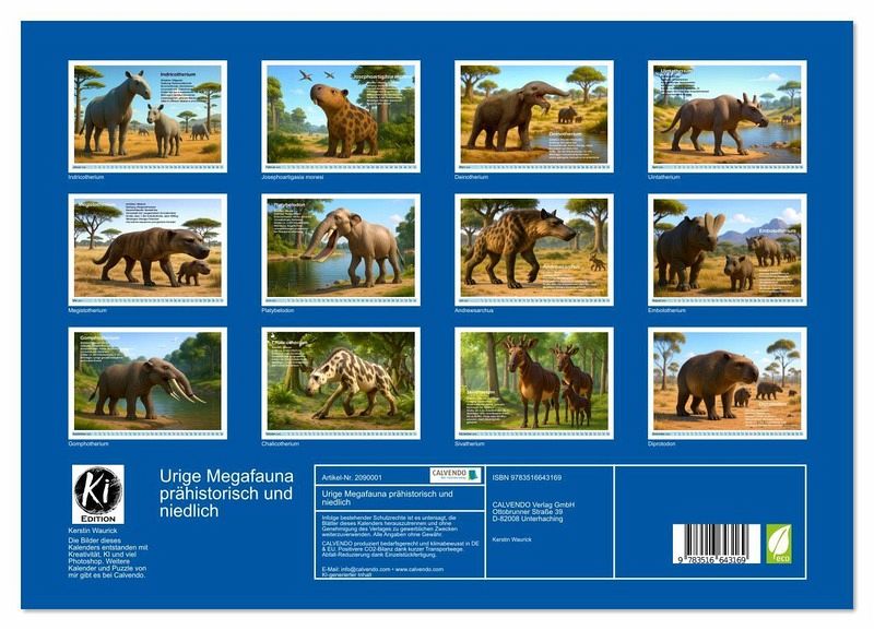 PREMIUM-LINIE - Brillanter Fotokalender mit 12 wunderschönen Motiven, Kunstdruck in Hochglanz in Museumsqualität.QUALITÄT - edle Materialien, stabile Rückwand mit 2 innovativen Einstecktaschen für eine optimale Präsentation an der Wand.NACHHALTIG - deutliche Abfallreduzierung durch bedarfsgerechte Einzelstückfertigung, umweltfreundliches FSC-zertifiziertes Papier, Produktion in Deutschland, klimabewusste Logistik.PERFEKTES GESCHENK - Kalender für Freunde und Familie, für Kinder und Erwachsene, jung und alt, zu Weihnachten, Geburtstag oder zwischendurch.Die faszinierenden ausgestorbenen Riesensäugetiere mal fröhlich wiederbelebt von Autor(in): Kerstin Waurick